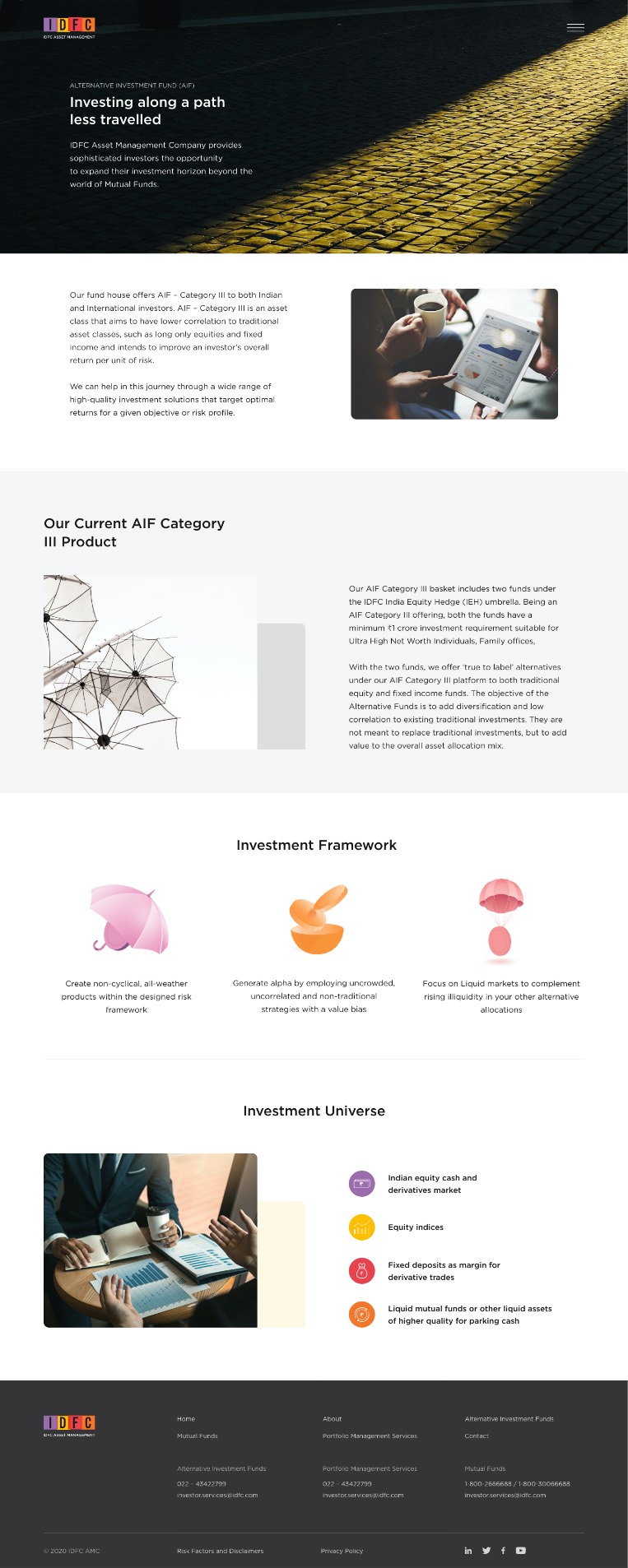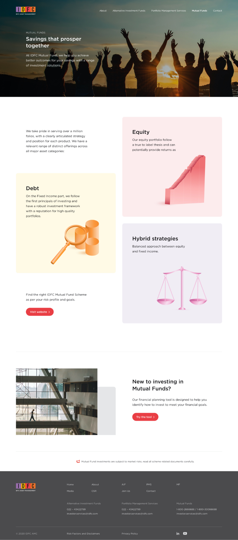 The complex world of investing and asset management was simplified on this accessible website that makes the offerings of IDFC AMC easy to understand for all kinds of investors. The seamless user experience incorporates custom illustration and iconography in a simplistic layout.
